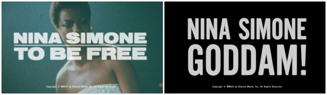 Liz: When I was making the film, we were really collecting archival material from the heyday of Nina’s career in the ’60s and ’70s. For me the title design was inspired by rock and music documentaries – the great rock and music documentaries of that era. I looked at the title design of Don’t Look Back and Gimme Shelter and other films that were around at the time to get the inspiration for the font and the layout.