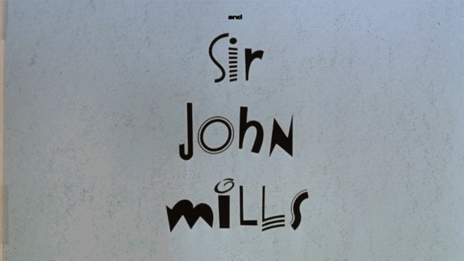 On the left side of the Sir John Mills credit, the tape from the credit overlay is visible