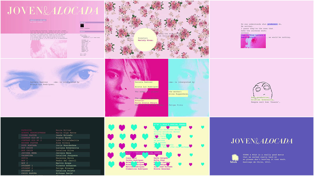 To me, that’s what makes them special – the fact that the main credits are in prose, as opposed to a classic two-column list of positions and names. We had the real “Joven y Alocada,” Camila Gutierrez, also the main scriptwriter, write the main cards.