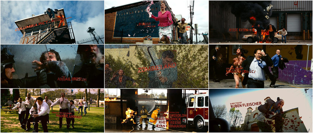 Featuring the second best use of classic Metallica (the first being Joe Berlinger and Bruce Sinofsky's Paradise Lost: The Child Murders at Robin Hood Hills) the title sequence to Zombieland does not back down. Flashes of jarring death slathered with slow speed splatter document a kinetic finality that does not force its humor. We see every black bauble of biohazardous blood upsurge and dot the landscape of a crippled Earth.